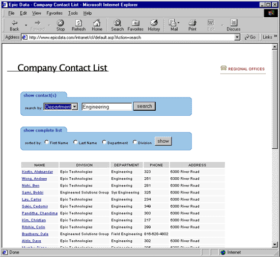 Epic Data Intranet - Contact List